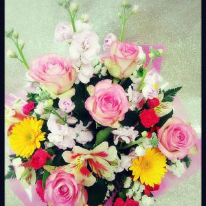 明日は友達の誕生日🎂 プレゼント用にアレンジを作りました。 喜んでくれるかな〜?