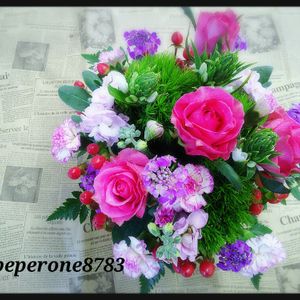 *お礼の花束* スポーツ少年野球団の監督へ 卒団式に贈る花束(*˘︶˘*) 男性に贈ると言っても お家に帰ると奥様が居て 花瓶に生けちゃうから 何色系が正解なのかどうか でも綺麗に輝いてた花で 束ねてボリュームあると お客様が喜んでくれたので ま、いっかぁ(*´艸`*) さて、今日は昼出勤なもので のんびりと… えー時間はどんどん過ぎる 貧乏暇なしって事? いやいや、ただのぐ〜たら だわ(^^; 今日は雨水の日ということで 昨日たまたまひな祭りを ググったら飾る時期で 雨水の日…聞いたことなし(笑) 良縁を呼ぶらしく 我が家の小さいけど可愛い こけしのお雛様 飾りました(´∀`*)ウフフ 仕事終わりに桃の花でも( *¯ ³¯*) 花粉症なのか寒さで風邪気味なのか… あたしの鼻は雨水のごとく マスクの下に鼻栓ティッシュ で( •̀∀•́ )b