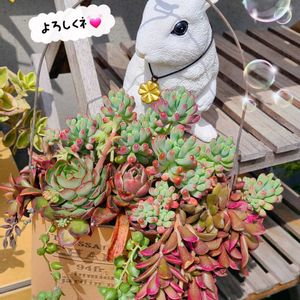 先日は🏷️ぐんぐん祭り 沢山のご参加ありがとうございました( ⁎ᵕᴗᵕ⁎ )💓 やっぱり春って楽しいですね🌱🌷🌱 秋も良いんだけど… 夏の疲れが出るからね。 厳しい季節が訪れるまでもう少しあるよね (*´U`*) まだまだ楽しく過ごしましょう❤️ 我が家の宅配BOXの横にぶら下げているセダムちゃん♪ 【ファイヤークラッカー&サンスパークラー・ブルーエルフ】 この場所でご満悦だそうです(ღ˘⌣˘ღ)