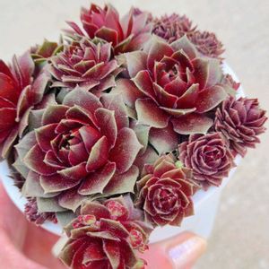 ☆New Face☆ 【モンシュシュ】 薄葉の真っ赤なエケベリアが欲しくてお迎え。 カットで根がないよ♪ ②レッドプラム この子を表紙にしようか… とっても迷ったわ🤭(笑) 無きKUSUの面影を求めてお迎え。 あら💡そばかす付けて段々KUSUに近付いて来たかも❣️ ③【コルテス】 この子も☆New Face☆ ちび苗だけどがんばれー✊ ④【シャビアナ・トラフルズ】 シャビアナは種類が沢山あるよね! ペレグリナも欲しくて迷ったけどコチラを💓 まだ巻きが薄いけど綺麗よ💋 やっぱり赤いエケさんって魅力的♡ॢ*‧˚ 今日はねアガベのカキ仔の植え替えをしました♪ 後は苔の生えてしまった鉢を幾つか植え替えしました。 🏷️真っ赤な火曜日 part.2です🌹