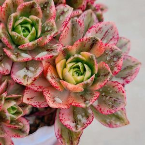'Fame Monstrose' 本当の姿から、かけ離れてるかも 知れないお姿🥰 でも昨年冬、外で冬越しした時より 断然しっかりした株になったよ。 いつの間にか……⭐ ランナー3本も出してて、ひとつは 結構形になっていました💗(⁎˃ᴗ˂⁎)尊い💗 3つ共にノーマルかも。 お迎えして2年目、初めて中心部を見たわ♪ 中心にはキャベツみたいな綺麗な株✨✨ 下を枯らして行くので根元がグラグラする💦 秋には鉢増しかな❣️ 🏷️センペルンルン月間 🏷️センペルンルン木曜日