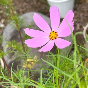一輪また咲いてました🌸🍃 職場のこぼれ種からの コスモス 鉢に移植したもの🩷