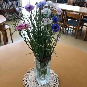 今朝 実家から 矢車草を 摘んで 花瓶に生けて💜✨