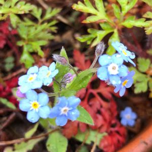 今朝の 雨で 宝石みたいに💎 光って見えた❤️ 「忘れな草」🌸 こぼれ種が...鉢の中で.. 可愛い❤️💕