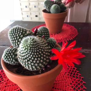 今朝 蕾だった..サボちゃん🌵 早く 貴方の 開花を 見たくて 日光浴💖 やっぱり..貴方は応えてくれた 可愛い💕 ところで..名札が取れてしまった 貴方は 誰❤️ 明日全貌を 披露できたら いいなぁ〜🌸 (