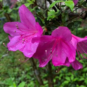 実家の ツツジが🌸 光沢ある💖✨ピンク色に... 雨降り効果かなぁ☔️