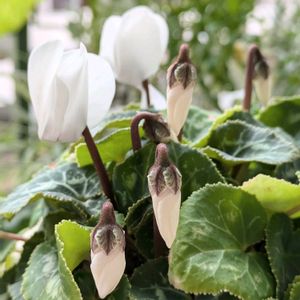 いつの間にか、 沢山の蕾が上がっていたガーデンシクラメン︎🤍🌿.∘ 少し早い開花だけど 咲いてくれてありがとう🤗💕 白い水曜日︎🤍🏷𓂃𓈒𓏸︎︎︎︎