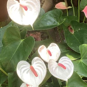 ⚪️アンスリューム⚪️ お気に入りの公園に咲いていました😊 初めて見た白色に足を止めて いました💕╰(*´︶`*)╯♡