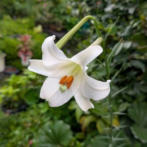 自生のテッポウユリが咲きました ここ数年であちこちから自生してきました 鳥さん、虫さん?蝶かしら? ただ「皇帝なになに」みたいな高さはいかがなものか?(笑)屋根越え咲きです