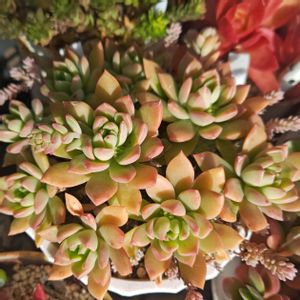 うちの子達がグリーングリーンしててなかなか丸っこくなってくれないのはひとえにお日様が足りないから。って事で明るいお庭の実家に贈る予定の子達をまとめ植え〜。 赤いのは貰った子。かわいい(*´˘`*)♡
