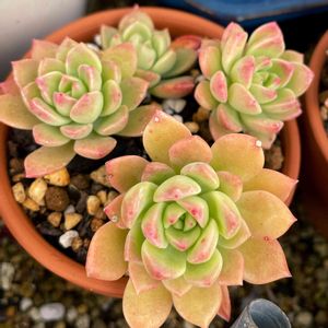 おはようございます🌄😃🌤 花芽祭り🌸開催中~🎶 D💯エケベリア三点盛り🍀🍀🍀 各地「ソメイヨシノ級」暖かさとか♨️ よい一日を🐬.。o○🌈🌏