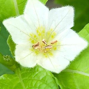 昨年見切り品のホオズキを購入。 小さい白い花が、下向き咲きます。 PICを撮るために、上向きにしてパチリ。 こんなに可愛い花が咲くなんて、知らなかったでしょう。