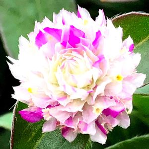 白地にピンクのバイカラー可愛い、千日紅。ピンクの入り方によって、表情が変わって面白いです。