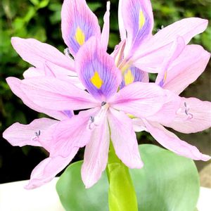 昨年購入した布袋葵(ホテイアオイ)が、高くした茎の先に、綺麗に咲いていました。蕾が次々について、咲くのが楽しみです。 実は、メダカと一緒に育てていましたが、メダカの数がいつの間にか少なくなり、別の睡蓮鉢にメダカを移動させました。 調べたら、ホテイアオイは日中光合成をして水中に酸素を作りますが、夜は呼吸の為、水中の酸素を使ってしまうのだそうです。酸欠だったのかもしれません。 また、根っこが長くなると、メダカの体に絡んで、死亡させる場合もあるのだそうです。 狭い鉢の中で、メダカや金魚を一緒に育てている方、ご注意下さいね。