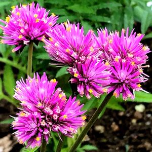 最近購入した、千日紅。庭に咲いた花火みたいで、綺麗です。タネが出来るまで、台風から守りたいです。