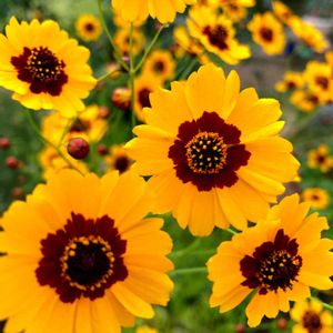 ハルシャギクは、イイネ。見ているだけで元気をもらえます。 真ん中の赤い模様が、蛇の目傘に似ていることから、ジャノメソウとも言いますよ。 晴れの日に、乾かした蛇の目傘と想像しても面白いかも。