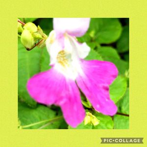 変わった形で、白とピンク色の花弁が可愛い植物は、釣舟草(ツリフネソウ)です。 源平ツリフネソウとも呼ばれています。 ヒマラヤ原産、一年草ですが、こぼれ種で増えます。地植えは、落葉樹の下に植えると良いそうですよ。
