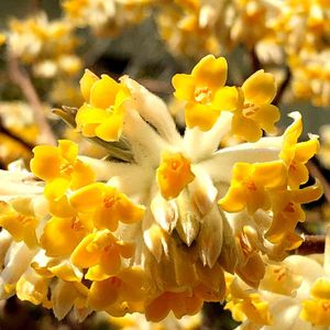 ジンチョウゲ科ミツマタ属の落葉低木。ジンチョウゲが雌雄異株なのに、ミツマタは雌雄同株(しゆうどうしゅ)です。枝が三又に分かれるのでこの名がつきました。 江戸時代までは和紙として使われ、明治以降は和紙から洋紙に替わり、紙幣として使われるようになりました。東京都虎ノ門二丁目にある国立印刷局の前には、ミツマタが植わっているそうです。 皆さん、お年玉付き年賀ハガキの引き換えは、お済みですか?今年は新年号を祝して、2回抽選がありますよ。2回目の抽選日は4/20です。お忘れなきよう💕