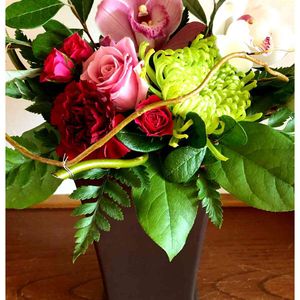 クリスマスに欠かせないのは、キャンドルです。フラワーアレンジメントで毎年作りますが、ロウソクを灯した事がありません。やはり火は心配です。今年は、100均のライトを灯そうと思っています。 バラ、SPバラ、スキミア、ヒムロスギ、ガーベラ、シルバーブルミア、姫リンゴ、ペッパーベリーとキャンドルホルダーです。