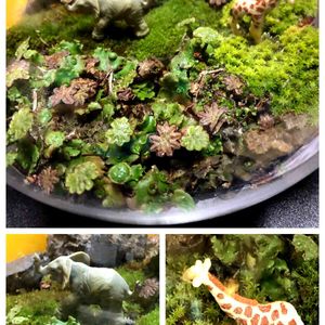 道端に生えている苔を3種類採取して、ガラス容器に入れて、ハイドロカルチャーにしました。フィギュアは、前回のものを使用。ハイドロカルチャーとは、ハイドロが水、カルチャーが栽培で、水栽培の事です。苔の下に専用のハイドロボールを入れます。苔のグリーンに癒されています。