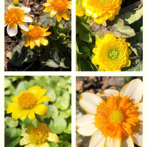 庭のヒメリュウキンカが咲きました。 右下と左上は同一で、光によって花弁が黄色から白に変化しますよ。