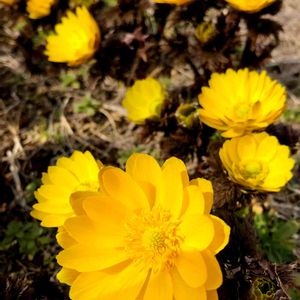 春の黄色い花と言えばタンポポ。 宮城では、それよりも大きくて、密集して咲く黄色い花。福寿草(フクジュソウ)です。 春の光に照らされて咲く様子は、 見ているだけで、こちらまでポカポカしてきます。