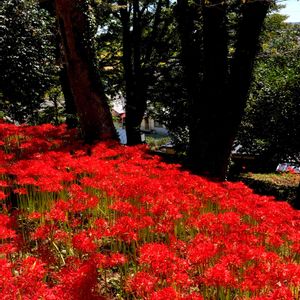 宮城県大崎市羽黒山の彼岸花。真っ赤な秋色の花が、一面に咲きます。 近づいて見ると、波立つ花弁やカールしたまつ毛みたいなシベに、キュンとしますよ。撮影は、9月19日