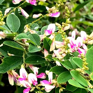 白地にピンクのバイカラーの萩は、江戸絞りです。遠目に見ても、興味を持つ植物です。