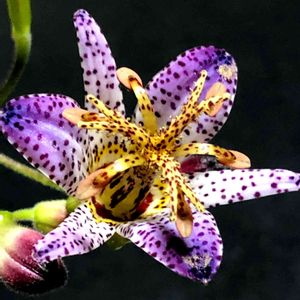 我が家のホトトギス、蒼天(そうてん) 普通よりちょっとだけ、小さいお花が可愛いです。 鳥のホトトギスのお腹の模様に似ていることから、この名前がついたそうですが、鳥のカッコウもホトトギスに似ているって、ご存知でしたか。