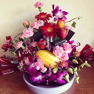 ハロウィン🎃のフラワーアレンジメント。キャンディに見立てた包装紙の中に、お花やオモチャかぼちゃ、姫リンゴを飾ります。 10月31日ハロウィンの発祥地は、アイルランドです。ケルト民族のお祭りでした。 夏が終わり秋の収穫に、作物をお化け達が荒らしに来ると信じられ、お化けに分からないように変装して行った儀式だそうですよ。