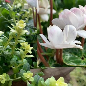 こんにちは😃 ガーデンシクラメンもそろそろ咲き終わり😅 緑の森の妖精💚🤍 フェアリーピコ💖🤍 お内裏様に見立て❣️ 庭に咲いてるシングルのクリローちゃんを三人官女✨❣️ 森のおひな祭り🏷🎎 参加させて頂きますね🥰 良い週末をお過ごしくださいませ😊💕