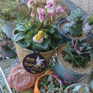 こんにちは😃 GSの今日のお花ガーデンシクラメン❣️ 我が家のニューフェイス💕🎶😍 スーパーの店頭で迷って2つお連れしました😅🥰 フェアリーピコ🧚♀️ クレヨン🖍 軽井沢育ち🏷がついていました💖