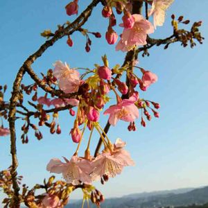 とても良い気持ち😊 青空にハナカイドウが冴えてます🎵 もしかしたら桜かな? カワズザクラでした