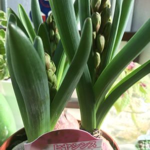 ヒヤシンスの花芽があっという間に伸びてきました。伸びるのが早くてビックリ!(もっとゆっくり伸びるのかと思っていました…) 暖かいところに置いていると花持ちが良くないと聞いたので、昼間はベランダの明るい日陰に、夜は北側の玄関に置いています。 ヒヤシンスのお花を育てるのは小学生の時以来ですが、毎日の変化が楽しいです♪