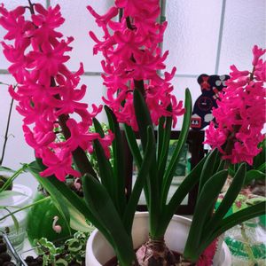 こんにちは☃ 外は寒くて雪が降っています❄ ピンクのヒヤシンスが咲きそろいました💖