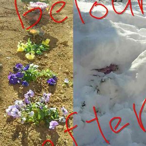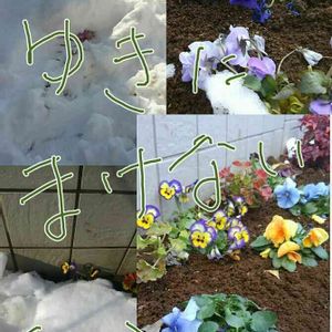 昨日の積雪… 地植えのパンジーが全て埋まってしまって😰 雪かきついでの救出作業です😅 明日帰宅してからどうなっているか不安ですが💧
