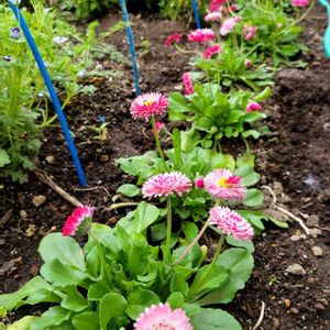 チロリアンデージー💗 鉢にいっぱい出たこぼれ種を地植えにしたらたくさん咲いてくれました🎵 この子たちのこぼれ種がいっぱい出たら、このエリアはデージーガーデンになるかも😆💞