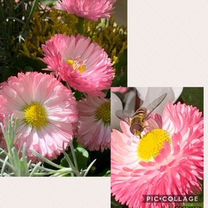 ピンクのデージー✼*✲*✻* 蜂にも人気♪̊̈♪̆̈