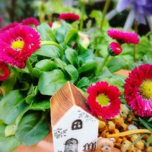 チロリアンデージーのお花畑︎︎︎︎𖡼.𖤣𖥧 朝は曇り…… 少し雨もポツポツ……⁝⁞⁝⁞ʕ•̫͡•ོʔ⁝⁞⁝⁝☂︎*̣̩⋆̩ アレアレ……今度は晴れ間が…… ʕ•̬͡•ʔ♡☼˚˖ ミニミニハウス……kurumi*サン チビクマサン作……チビタニコちゃん