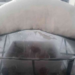 雪を被った簡易ビニール温室⛄ 部屋からも出し入れできるように窓と対面でビニール被せていて 今朝、様子を見ようと窓を開けようとしたら… 凍って開かない😭 立春過ぎたのにね~😅