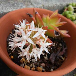 とうとうファイヤーストームにお花が咲いちゃいました 2週間前に咲いたものは、干からびて本体ごとお星さま⭐️になっちゃったので、今回は✂️で切っちゃいます