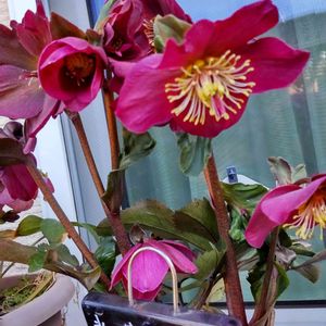 クリスマスローズ 氷の薔薇 🌹レッド タワーのように咲いてる🗼 🌹ホワイト 2鉢 秋に株分けしたのでこんなもんかな🌿 すさまじい勢いで咲いて、 早いこと終わっちゃいそう( ߹꒳߹ )