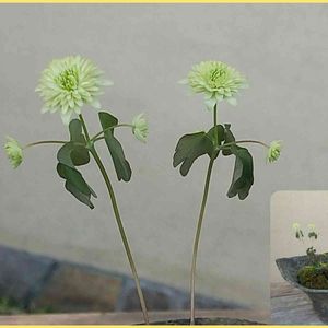 昭和記念公園 盆栽園 緑花八重咲き バイカカラマツソウ 小品盆栽として展示 可愛らしい花姿、とても心和むやさしい一鉢でした。
