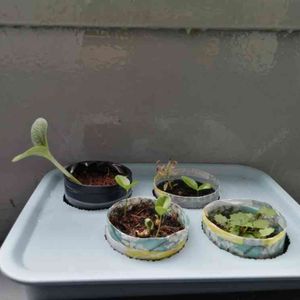 8/19 ペットボトル栽培 丸ズッキーニの芽が出てきました。 一方、オレンジの生長が少し鈍りました。 もう少し経過を見てみます。
