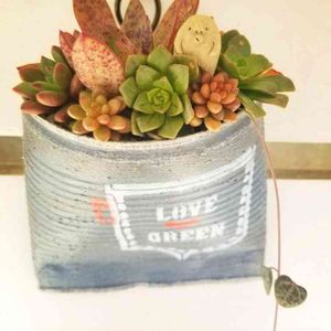 ふみにゃんさんのリメ缶って大好き💓♥️❤️ 色、形が絶妙(∗˃̶ ᵕ ˂̶∗) そこへいつも仲良くしてもらってるさなぼてんさんから頂いた伊達法師さんをin♪♪♪ で、最後にしのんさんから頂いたコビトさんをトッピング~~~💗 可愛い多肉パフェ?!が出来ました(●嬉>∀<艸)