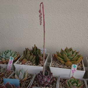 葉挿しちゃん整えました part① 札付けて、まとめてたのを 鉢に植え替えました(^-^)