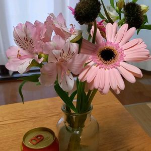 3連休2日目。自分に花を買いたくて、近所のJAへ💐 花を見た瞬間、強い癒しのエネルギーを感じ、想像以上に自分が疲れていると気付く😳 自分が育てていない花からも気付かされ、私はつくづく花に助けられているなぁと感謝✨ カーテンが揺れる涼しさの中、ビールでのんびり乾杯🍻
