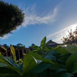 文化の日の朝は、2時間かけて庭のツツジの剪定&草刈り🌿 青空に映えるユリオプスデイジーを見て一休み🌼