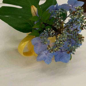 今朝の職場でのアレンジメント💐 最後の紫陽花と百合の蕾、職場の方の差し入れモンテスラの葉🍀 モンテスラの葉が涼しげ~☺️🍀