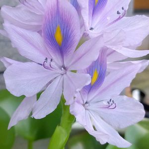 今朝庭のパトロール🦺へ出ると、めだかの鉢からホテイ草が開花していた😊💐 優しい紫🟣